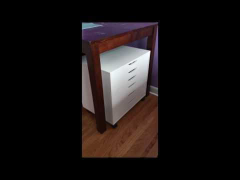 I live about 40 minutes away from the nearest Ikea in my area but we have a new shipping point nearby. I ordered everything online and then had it shipped to the shipping point. They emailed me when it was in and we drove 10 minutes to pick it up. It all fit in the bed of the pickup and made for a stress free trip home. Once there my husband asked who was going to build it. I think he was worried that my answer was going to be him....he hates building Ikea furniture. His problem is that he doesn't quite follow the directions and ends up frustrated. I told him this was going to be all me. It took me 3 days to build everything. I built one table a day. I put 2 together over 2 afternoons, before heading into work on the night shift. The Skarsta sit/stand desk was fairly easy and straight forward to build. I did need my son to help me at one point because you basically build it upside down and then flip it over. It's too heavy for 1 persons to pick up and flip but with my 15 year olds help it was a piece of cake. The next thing I built was the Alex drawers and Linnmon table and legs. This was super easy and didn't take too long. The final piece to build was the Hemnes desk and hutch. This took me the entire afternoon and into the evening. The only part I really had a problem with was putting the drawers into the desk. I had to get my hubby to do it because I just could not get it to fit properly. All in all, building all the furniture was fairly easy but I will stress this.... I followed the instructions closely. I looked at all the pictures to make sure I had the right pieces at the right time and built everything exactly as it was laid out in the instructions.